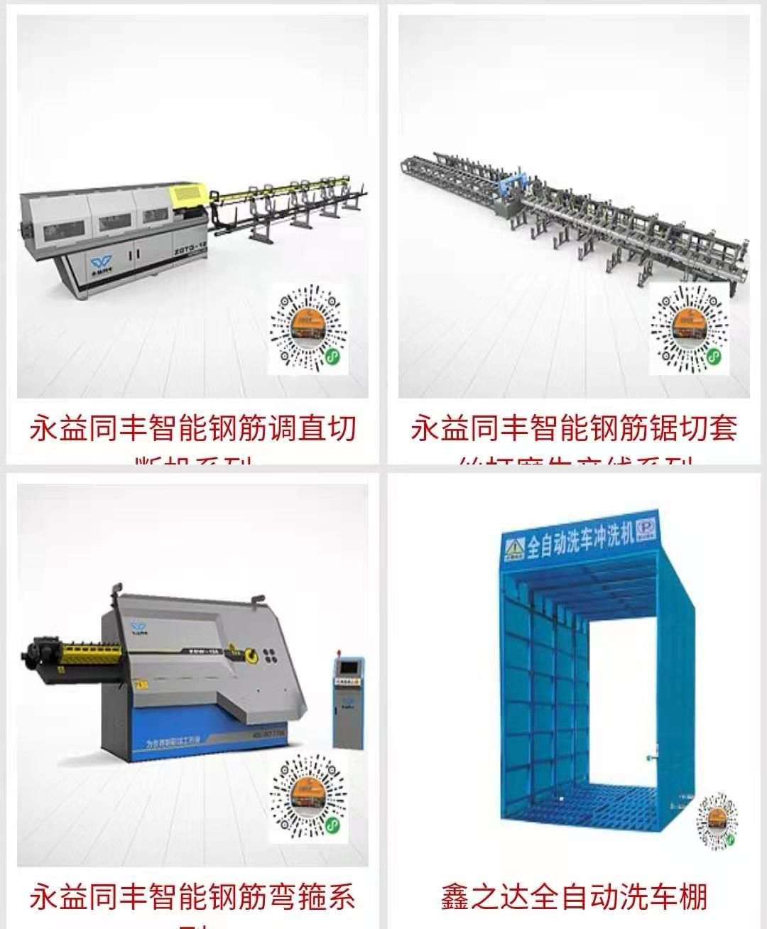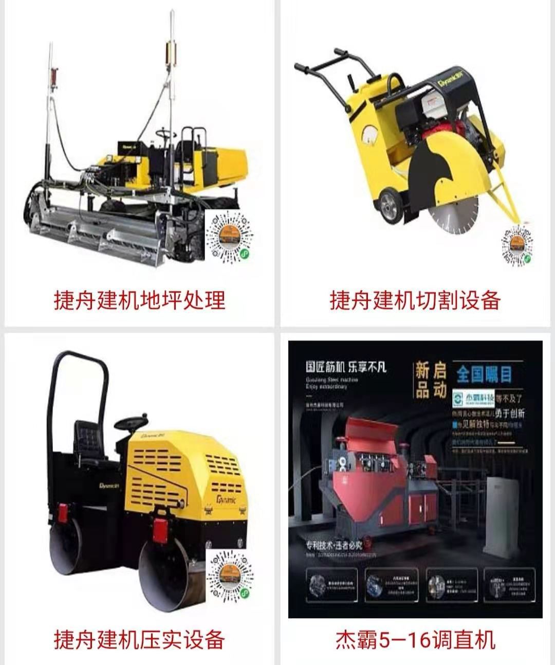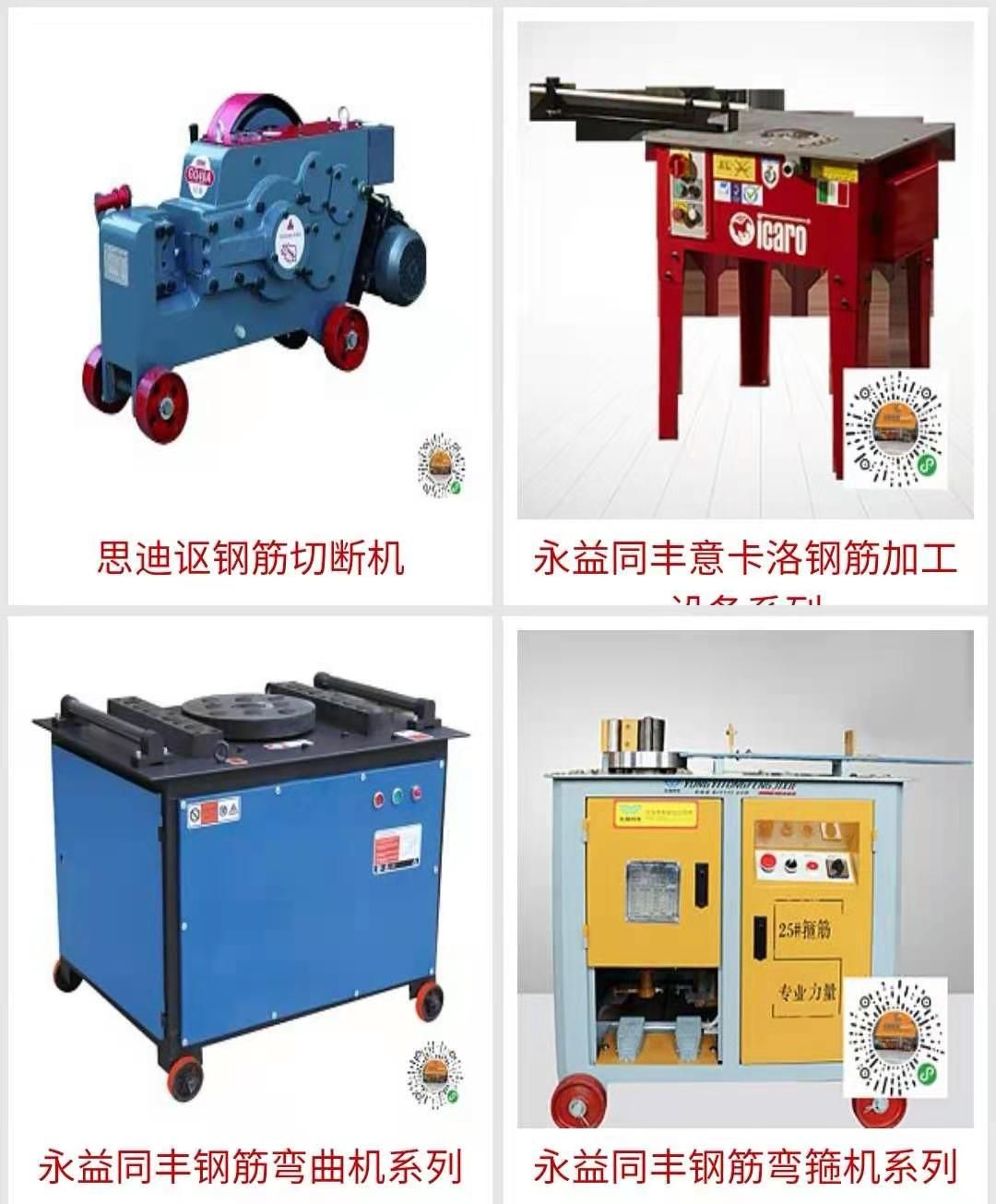 主营项目:五鼎联合钢筋切断机、钢筋弯箍机、钢筋直螺纹切断机、钢筋弯曲机、钢筋弯弧机、工程洗车棚、全自动洗车棚、钢筋调直机、智能设备、数控钢筋五机头弯箍机、立式弯曲机、钢筋绕笼机、金属锯床产品展示、数控多功能弯曲弯箍一体机、智能钢筋弯箍系列、智能钢筋锯切套丝打磨生产线系列、智能钢筋调直切断系列、智能钢筋剪切生产线系列、智能钢筋笼滚焊机系列、智能钢筋弯曲中心系列、智能钢筋焊接生产线系列、数控钢筋弯圆机系列、隧道专用设备系列、钢筋套丝机系列、钢筋锯切机系列、钢筋铣磨机系列、钢筋调直切断机系列、钢筋切断机系列、钢筋弯弧机系列、钢筋弯箍机系列、钢筋弯曲机系列、意卡洛钢筋加工设备系列、塔吊、地泵、强制混凝土搅拌站 、稳定土拌和站、水温站、滚筒搅拌机、配料机、水泥仓、螺旋输送机、水泥称量、水称量、翻斗车、路面摊铺机、钢筋调直弯箍一体机 、钢筋弯曲中心、拱弯机、振动梁 、翻斗车,切断机、抹光机、 调直机 弯曲机 弯箍机 打夯机 磨光机 切割机,马路锯片 、对焊机 、振动棒 、振动电机 、清雪机、扫雪机、推雪机、 铣刨机,研磨机 、抹墙机、清渣机、刻纹机、弯弧机、除锈机、电动推车、平板夯机、立式夯机、清冰机、扬雪机、激光整平机 座驾磨光机 、小滚筒、试模 、切铁锯片、振动尺、发电机、绳锯 搅拌罐、水准仪 、经纬仪 、全站仪、混凝土二次构造泵