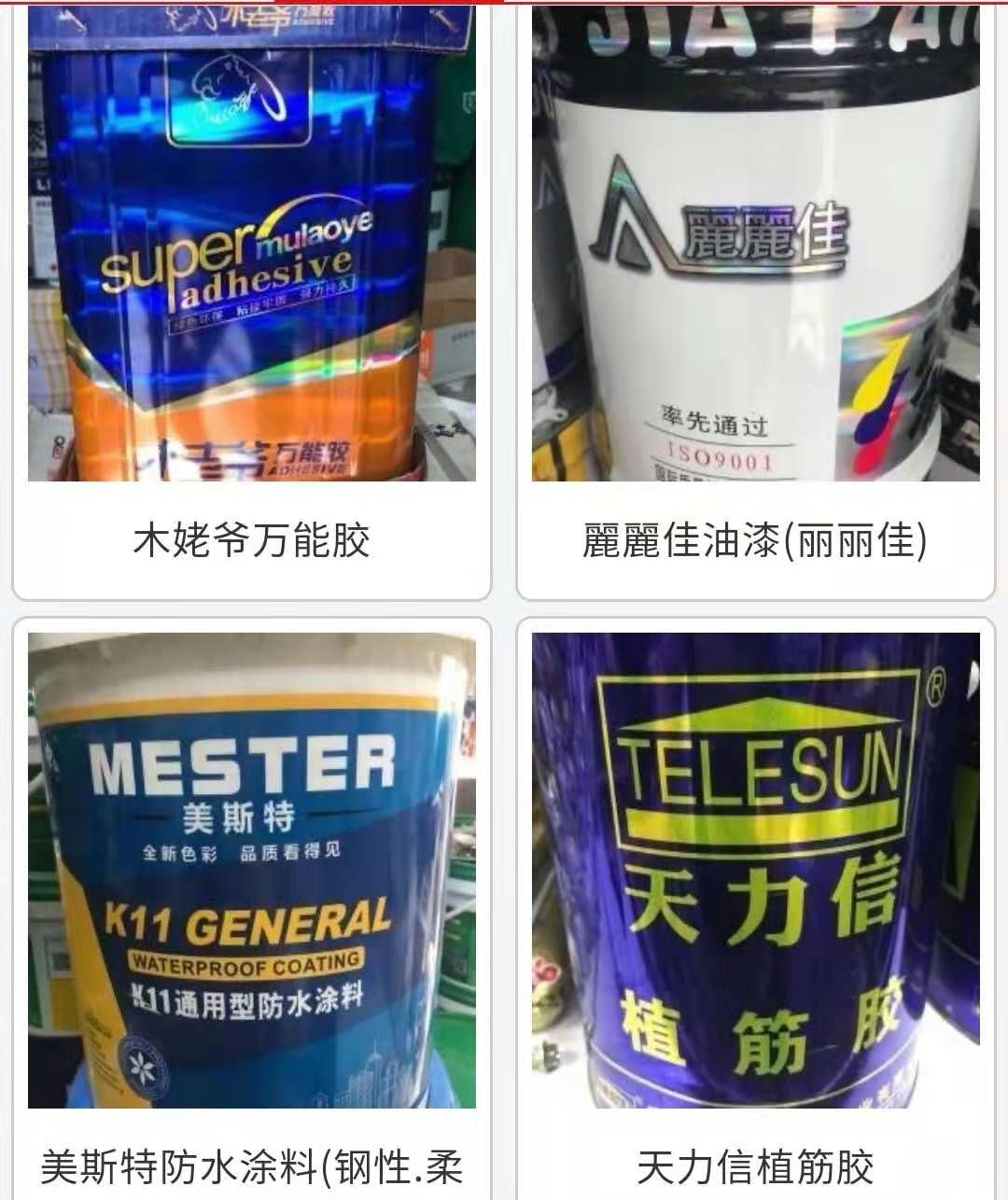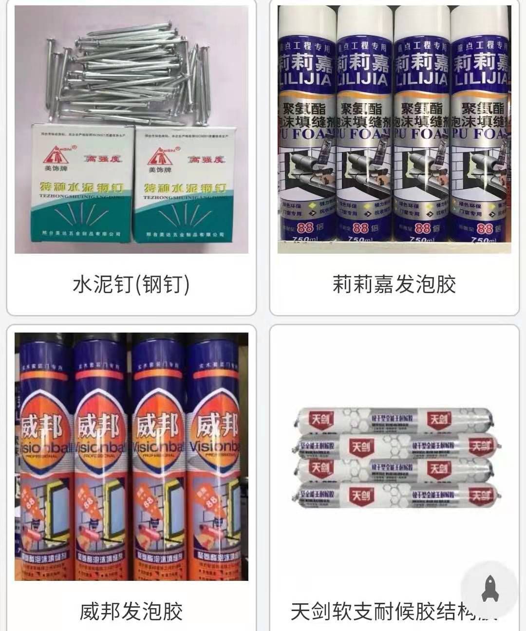 主营项目:丽丽佳油漆 硝基漆 聚脂漆 金箔滚 金粉 银粉 玻璃胶 发泡剂 理石胶 原子灰 植筋胶 密实胶 821腻子粉 砂浆王 环氧铁红防锈漆 各种化工原料 自喷漆 胶带 美纹纸 泡棉 乳白漆 502胶 101胶 各种胶粘带 砂纸 纱布 钻尾钉 射钉 钉子 钉 射弹 气钉 码钉 钢排钉 自攻钉 单线钉 拉铆钉 泡钉 膨胩螺栓 鼓垫塞 合页 玻璃胶 发泡胶 胶美斯特防水涂料 天剑钢排钉 天剑干壁钉 旭力达平头燕尾钉 中达钻尾钉 天剑特种钢钉 大帽拉铆钉 庆顺达石膏板自攻钉 旭力达黄自攻钉 中达木钻尾钉 注射式高强植筋胶 高效注射改性环氧植筋胶,莉莉嘉发泡剂 威邦发泡剂 天剑中性结构胶 木老爷万能胶 天力信植筋胶 辉澳高强建筑植筋胶